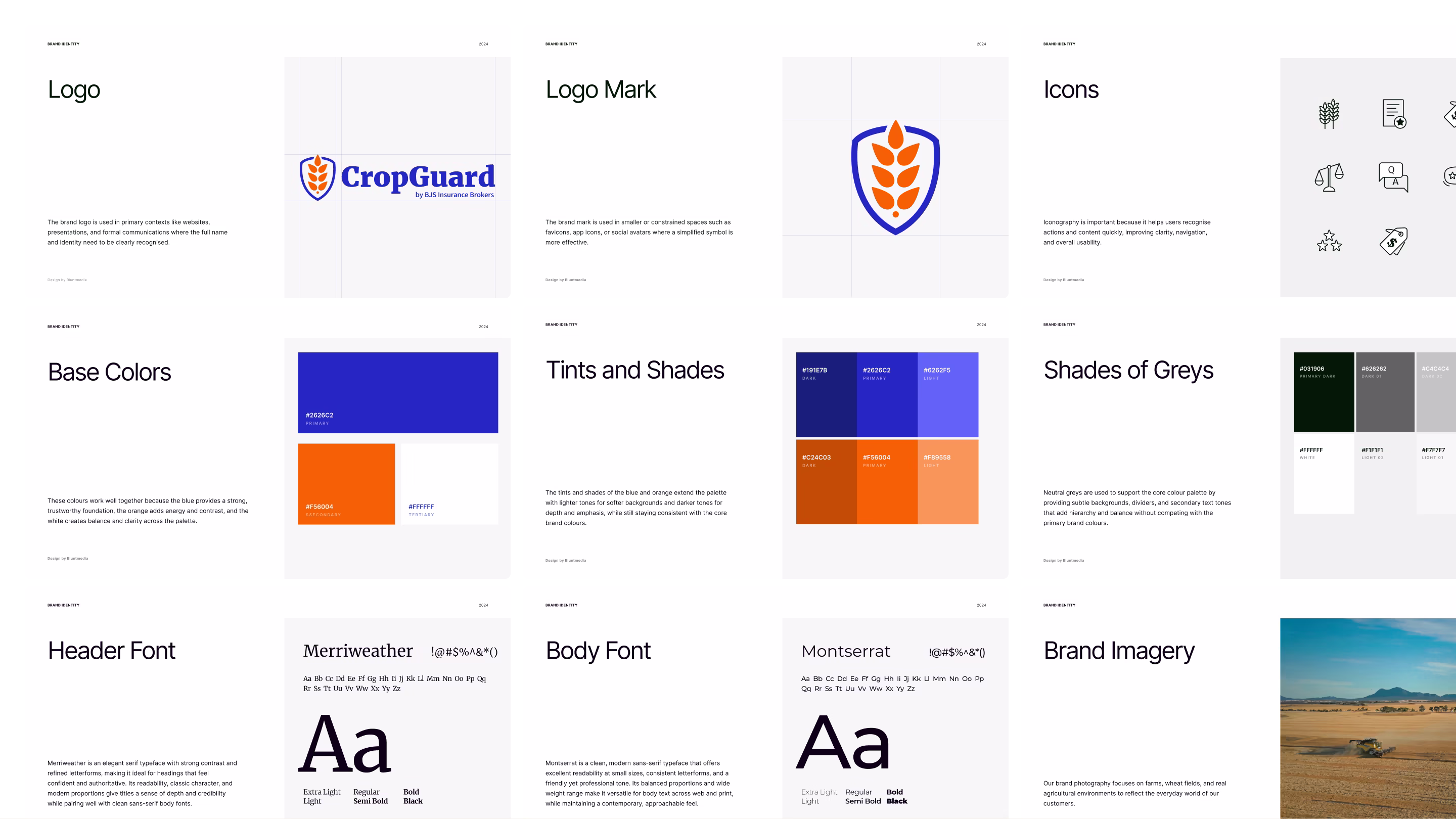 We kicked off with a brand workshop with the CropGuard leadership to define voice, values, target audiences and competitive positioning. We then developed a logo, colour palette (based on the parent company - BJS Insurance), typography, and a simple brand guideline document.