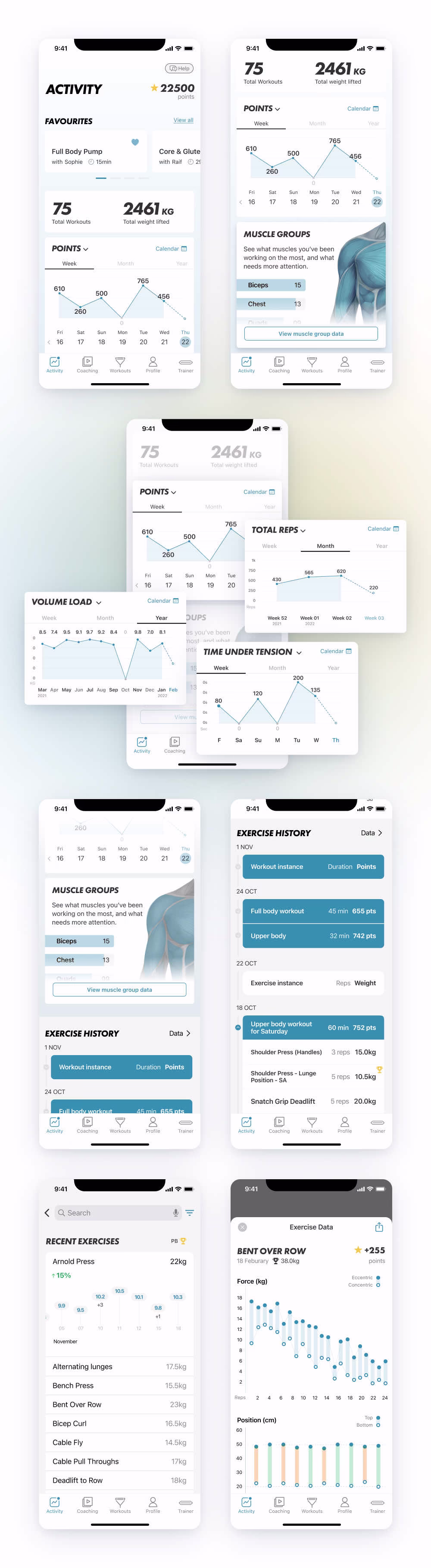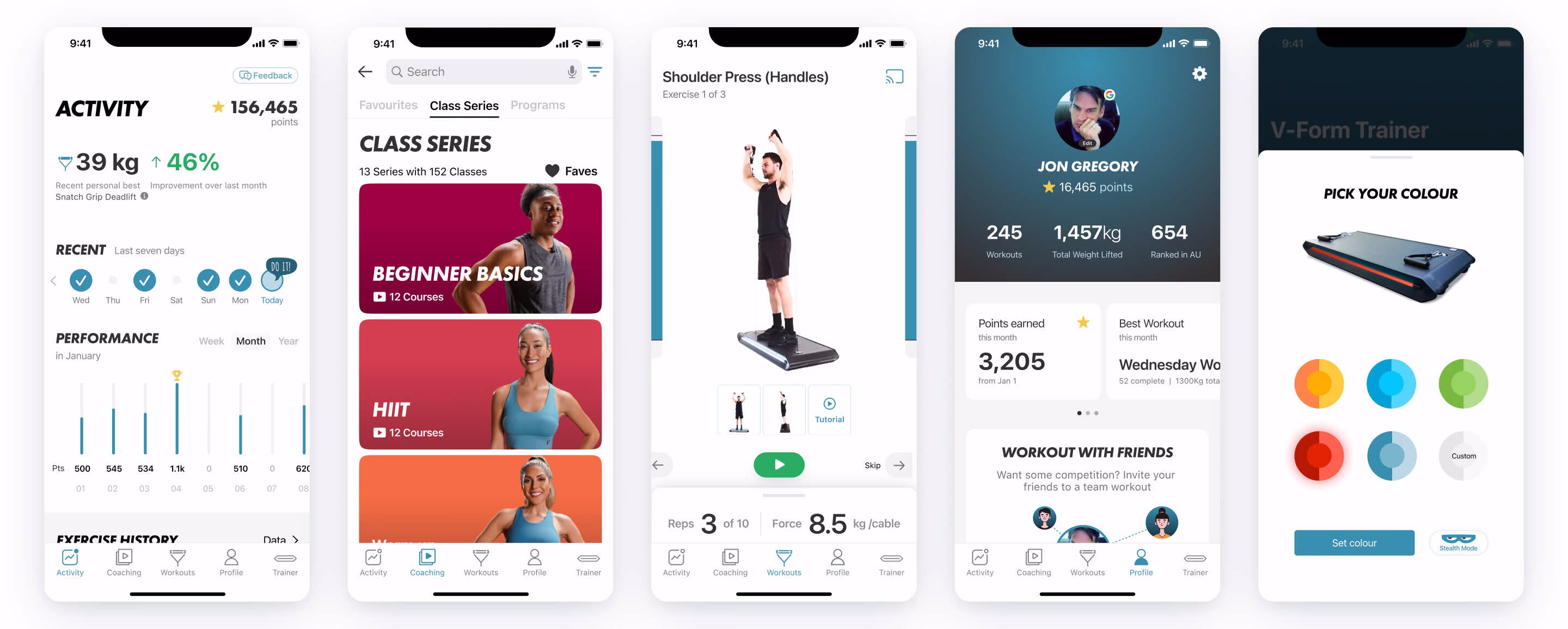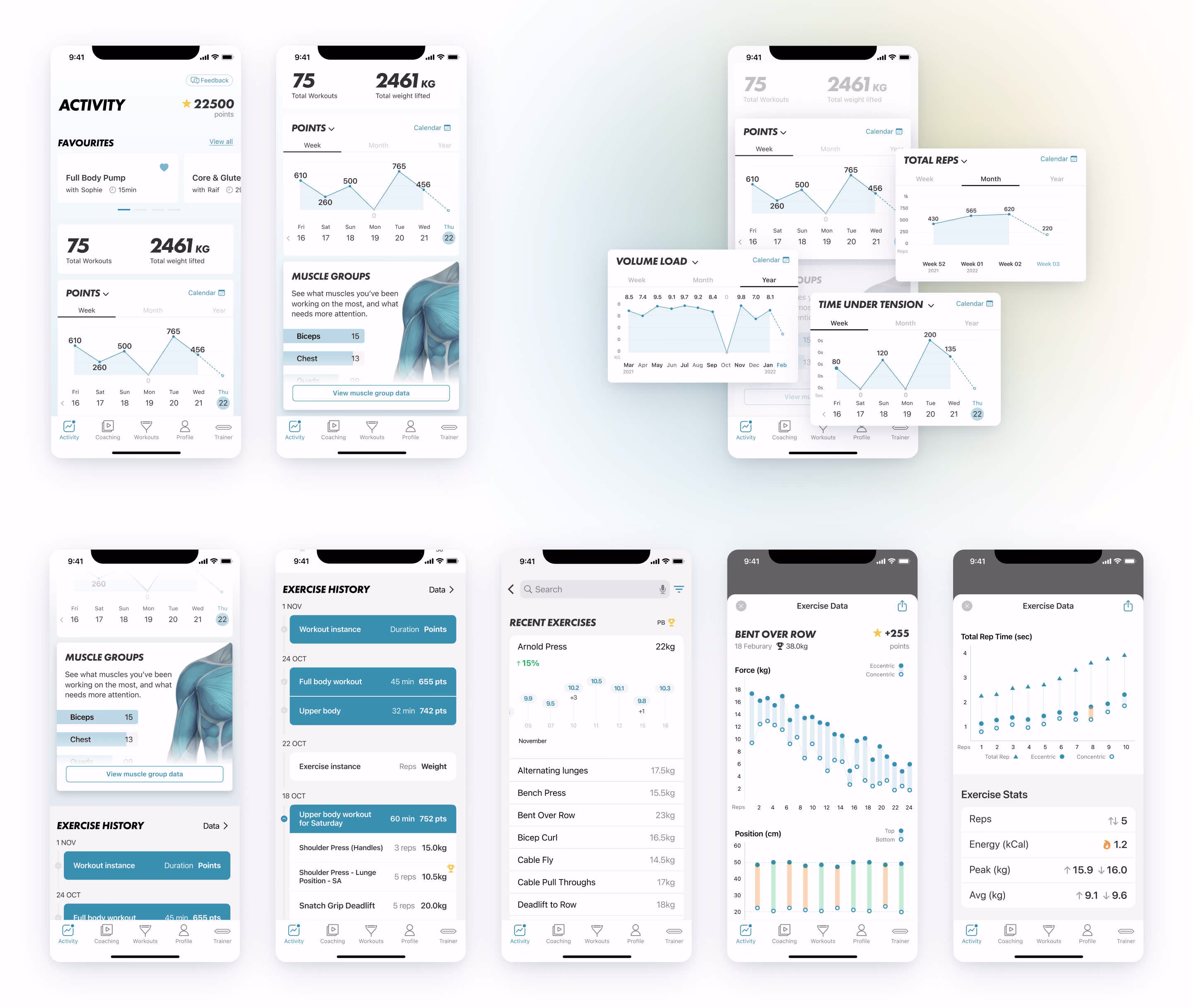 With no previous app, no UI groundwork and no design system in place, the team needed a clear direction for how the product should look, feel and function. The prototype validated the concept, but the experience required structure, consistency and a visual identity that matched Vitruvian’s high-performance hardware.